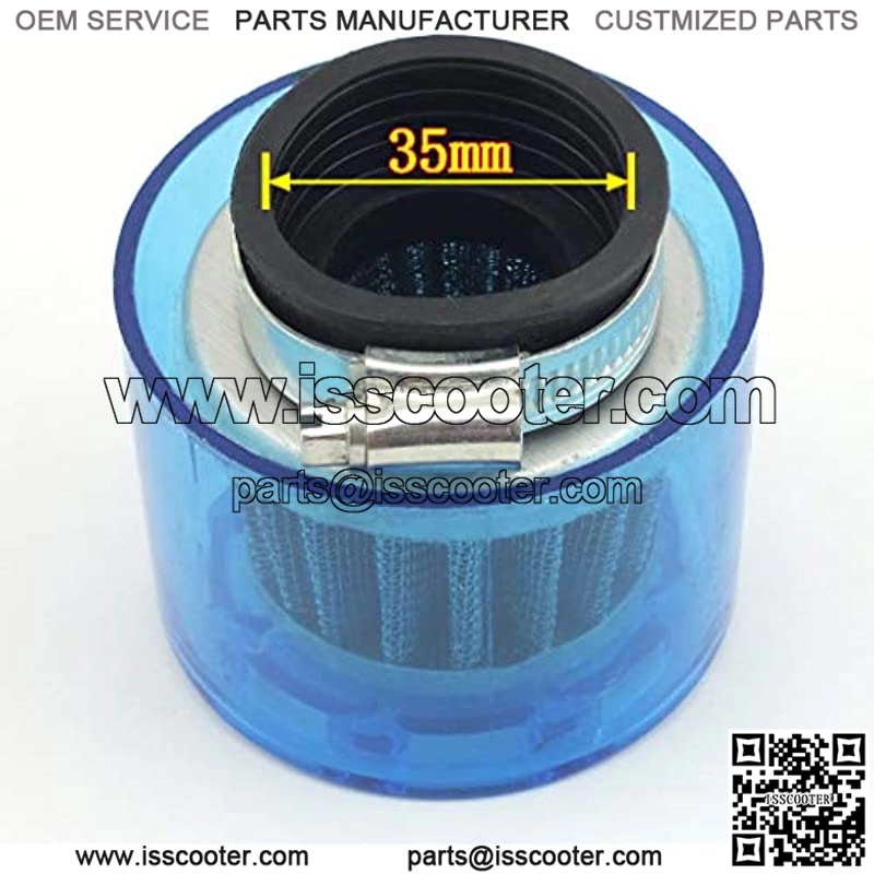Has a K&N style gauze filter covered with a plastic cover to stop intake of water into the carburetor. The air filter prevents abrasive particulate matter from entering the engine’s cylinders to