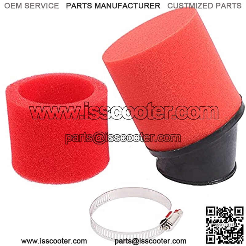 Universal 44mm 45mm 46mm Red Angled Double Foam Pod Performance Air Filter Cleaner 50cc 70cc 90cc 110cc 125cc Motorcycle ATV Quad Scooter Go Kart Moped Pit Dirt Racing Super Pocket Mini Bike