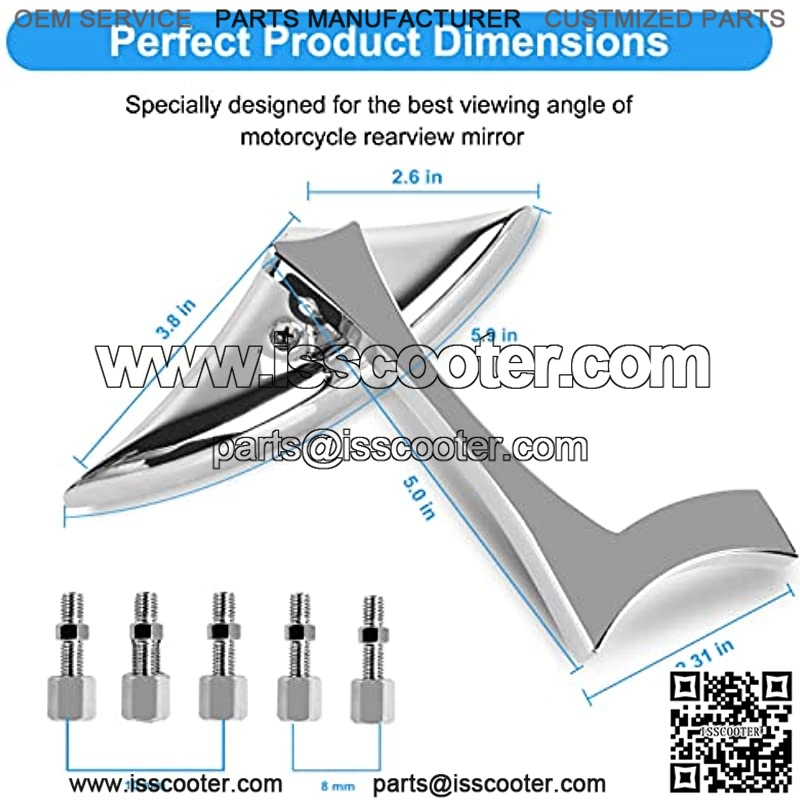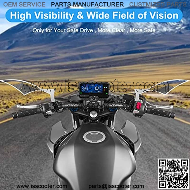 Package included – 2 motorcycle side rear views mirrors, come with 2 x 10mm adapters; 2 x 8mm adapters; 1 x 10mm counter-clockwise adapter Wide Field of Vision