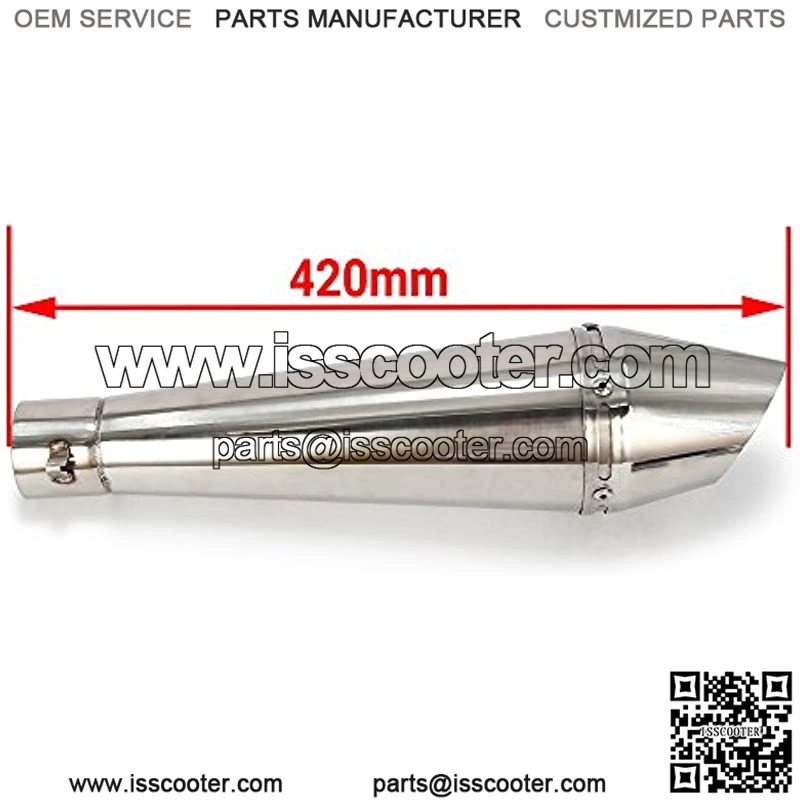 [FITMENT] – It Is Universal Muffler Can Be Used For Dirt Bike, Street Bike, Scooter, Quad And Any Other Bike With Pipe Diameter 38-51 mm[QUANTITY] – 1 * Exhaust Pipe And Sold With Hardware As Pictures.Installation Instruction NOT Included.[FUNCTION] – The GP series exhaust which add power and a more race-inspired sound to your bike as well as lowering the overall weight.Sounds really great; Meet many buyers’favor; Have a try and you will not disappoint.[HIGH QUALITY] – 100% Brand New, Never Mounted, High Quality.Stainless Steel Welding Adaptor Allow To Fit Pipe 38mm – 51mm.No DB Killer, The Sound Will Be Outstanding.Reducing Overall Weight For Top Performance To Obtain Max Output.Professional Installation Recommended.[AFTER SALE] – Manufacturer warranty for 90 days from date of purchase.We are committed to provide excellent customer service,If you have any questions,please contact us.We will try our best to solve your problem.Product DescriptionFeatures: 100% Brand New, Never Mou