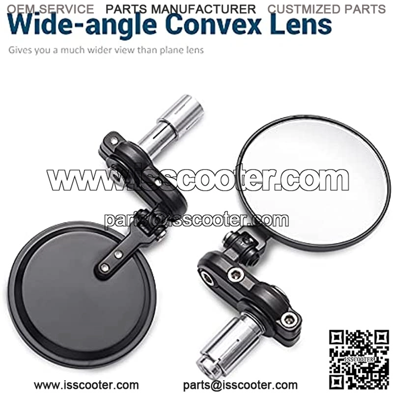 Universal Motorcycle Bar End Mirrors – 3 Inch Round Folding Bar Convex End Side Mirror Compatible with Honda, Scooter, Suzuki, Yamaha, Kawasaki, Victory and More