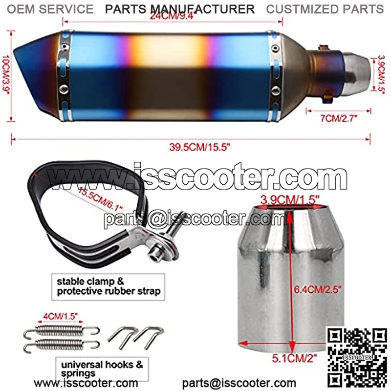 [Universal] For street / sport motorcycles, scooters, dirt bike, street bike ATV Quad with 38-51mm diameter exhaust pipe.