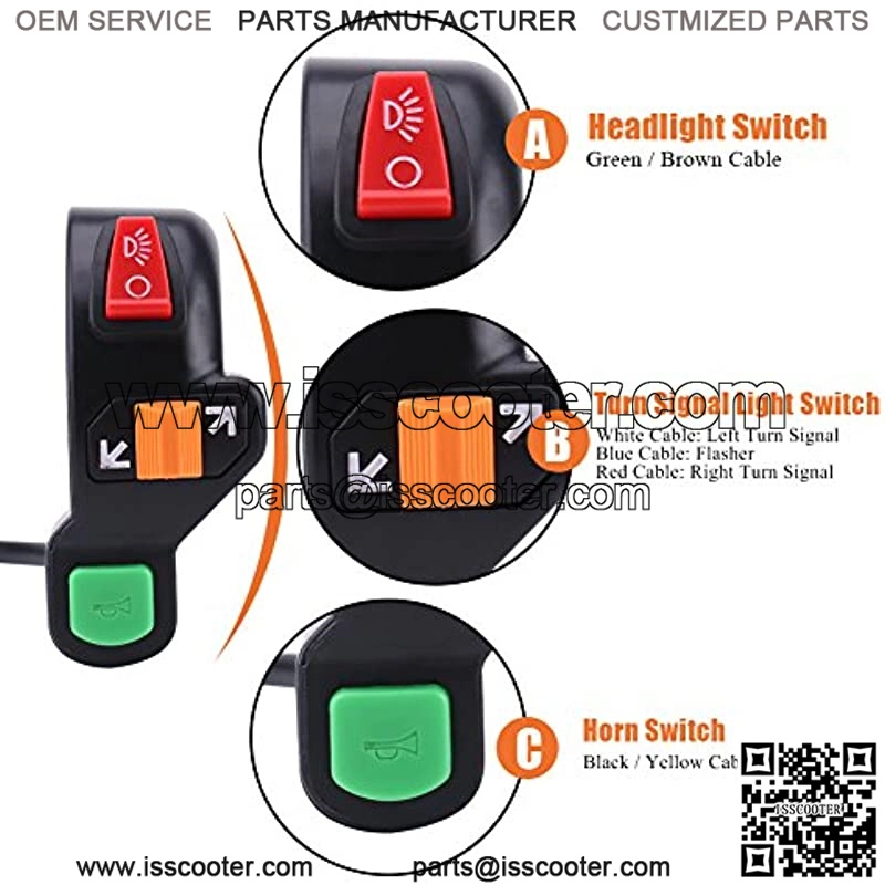 On Off Switch: Motorcycle handlebar mount switch with 3 buttons used as on/off switch for control motorcycle headlight, turn signal light, and horn. Easy to install and convenient to use, perfect for your motorcycle modification