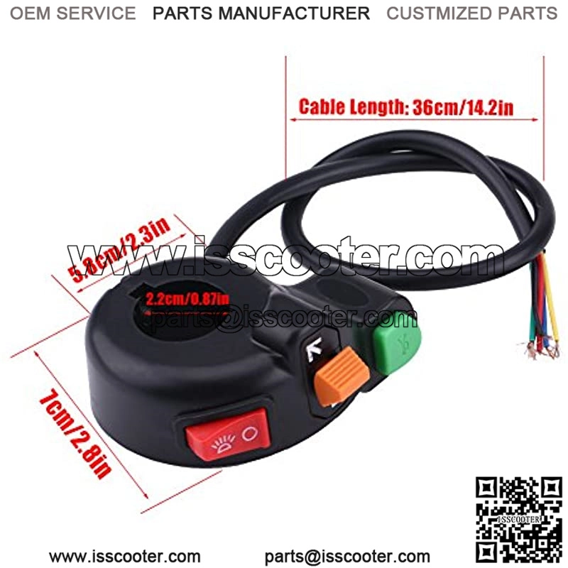 Easy Installation: Compact size for easily refit to you motorcycles, motorcycle handlebar headlight switch can be directly installed on the handlebar. Mounting Hole Diameter: 2.2cm/(7/8inch); Size: 7 5.8 3.1cm/2.8 2.3 1.2in