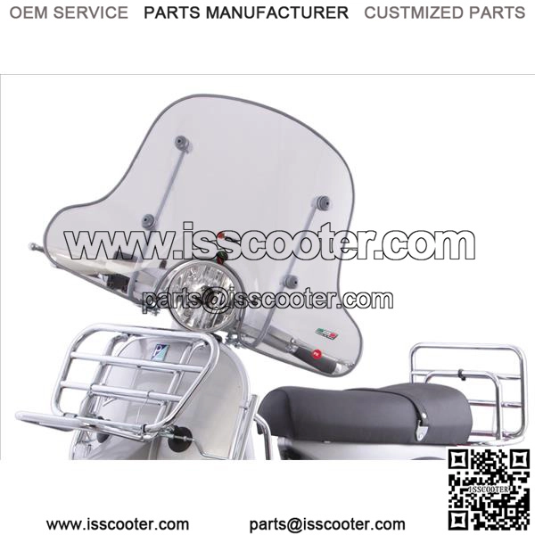 The feel of wind in your face is one of the fun aspects of riding a scooter, but when weather turns wet and windy with snow and sleet, it’s high time to get a wind screen.Protect your body and clothing from wind and weather. All wind screens are made of acrylic glass. Attach through the existing holes on the under side of your handlebars. A high wind screen is perfect protection in rain and protects your clothing to a good degree. The higher proportions are not always accepted by inspection. Check out your local inspection for details. Semi high screens (max 370mm) offer a good wind-protection for chest, neck and hands. An ideal compromise between looks and function. FACO und FABBRI windshields (max. height: 370mm) come with a ABE / Tcertificate. The screens are made from acrylic glass and have an edge protection. Af