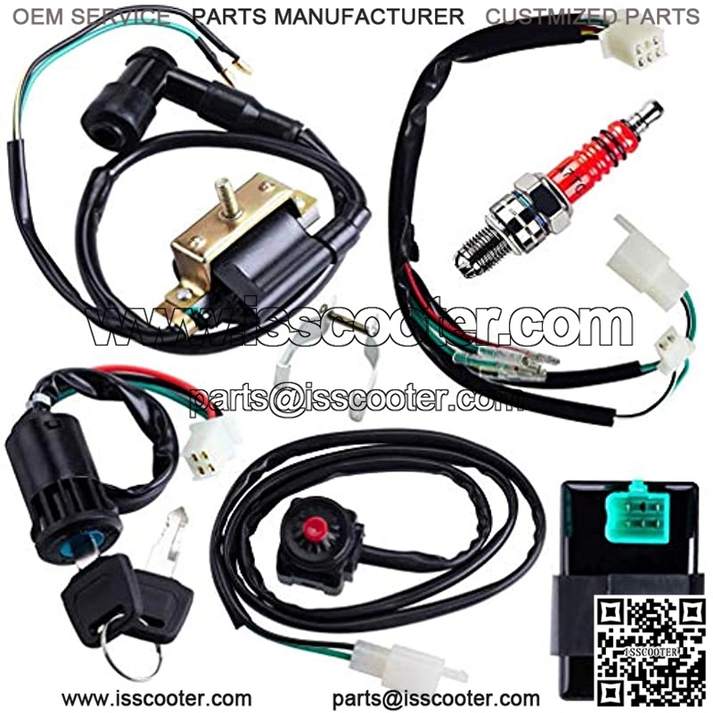 Pit Bike wire harness kit includes: Ignition Coil,CDI,Spark Plug, Key Switch,Kill Switch,Wire Harness.2-Wire Ignition Coil fits for most Chinese 4-stroke 50cc-125cc ATVs, Dirt Bikes, Go Karts, and also fit Honda XR50/CRF50 or it clones 70-125cc Pit Bikes.